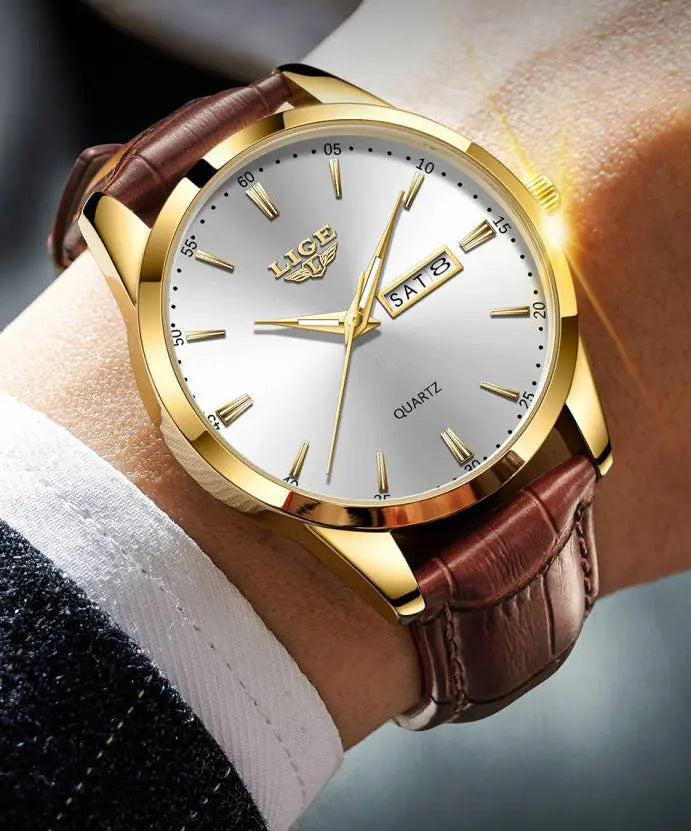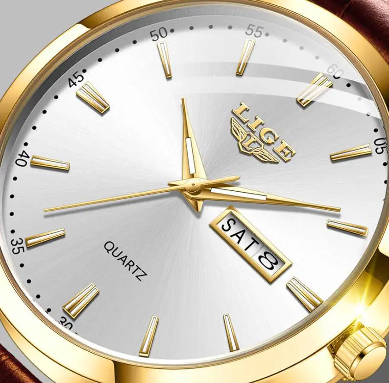 Enrichie par une texture originale, trois aiguilles élégantes, un pointeur princier et un index doré, la montre de luxe homme pas chère LIGE Paragon garantit une lecture facile et limpide. Son double cadran de date et son logo en relief ajoutent une dynamique visuelle impressionnante.